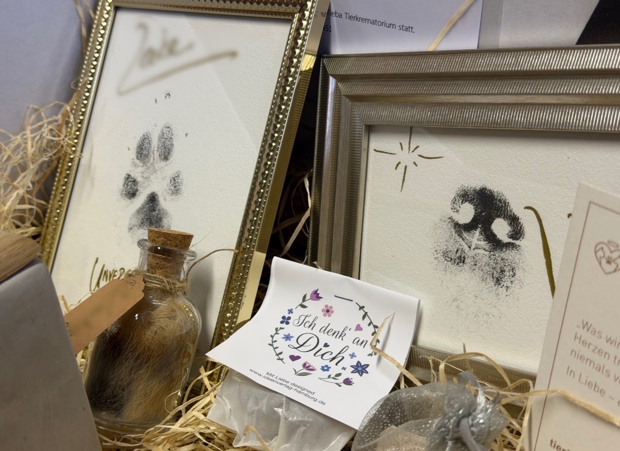 Ein liebevoll zusammengestelltes Set für bleibende Erinnerungen: Unser Erinnerungspaket vereint mehrere besondere Andenken, die die Einzigartigkeit Ihres Tieres auf unterschiedliche Weise festhalten.