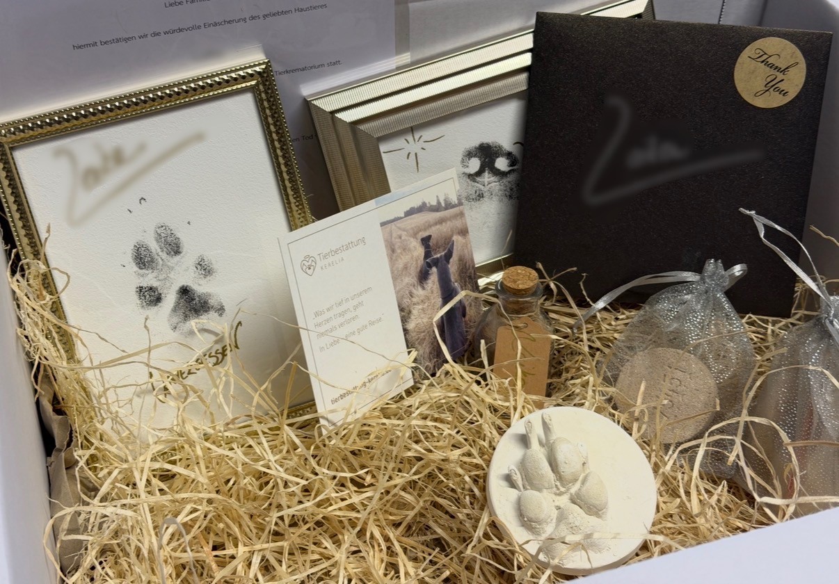 Ein liebevoll zusammengestelltes Set für bleibende Erinnerungen: Unser Erinnerungspaket vereint mehrere besondere Andenken, die die Einzigartigkeit Ihres Tieres auf unterschiedliche Weise festhalten.
