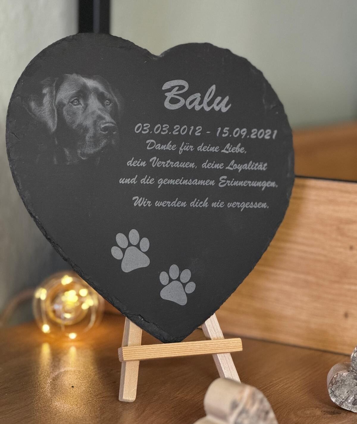 Individuell graviertes Schieferherz – Ein liebevolles Andenken an Ihren treuen Begleiter