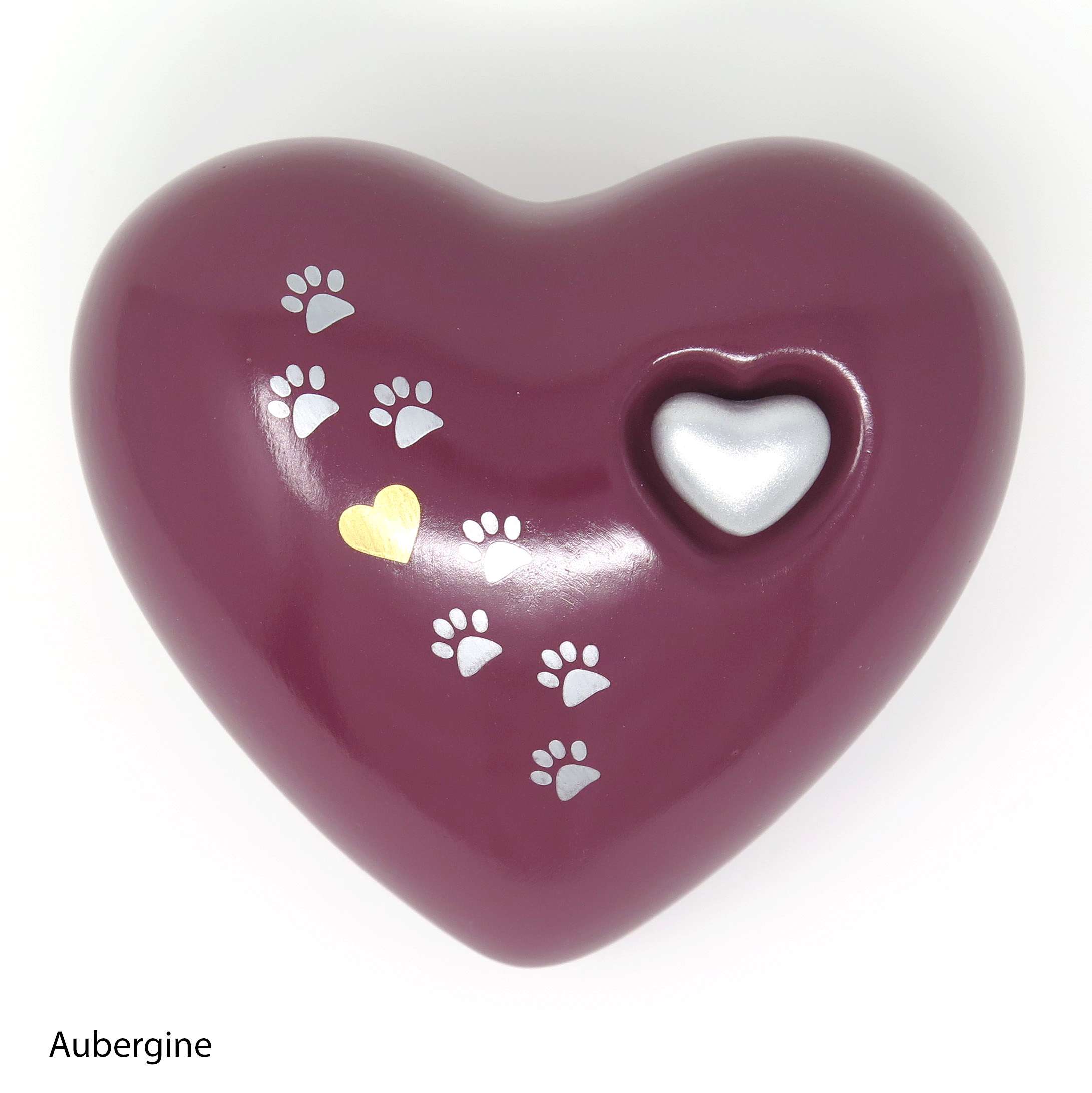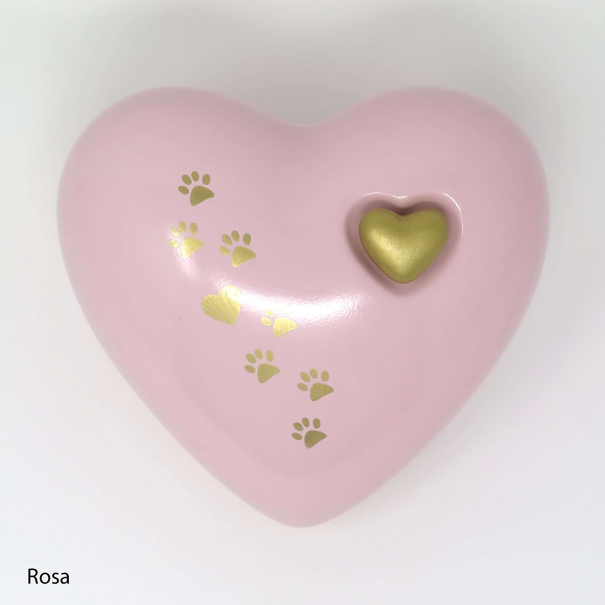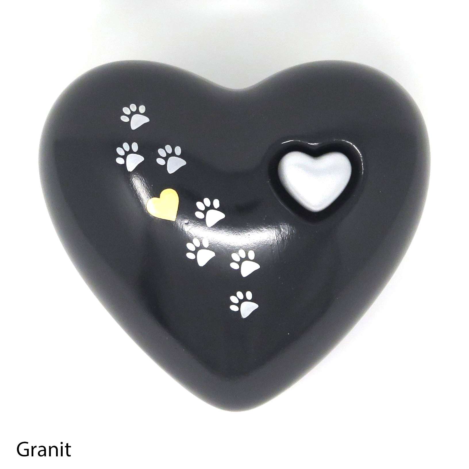 Diese wunderschöne von Hand bemalte Herzurne wurde liebevoll mit Pfötchen und einem kleinen Herzchen bemalt.
