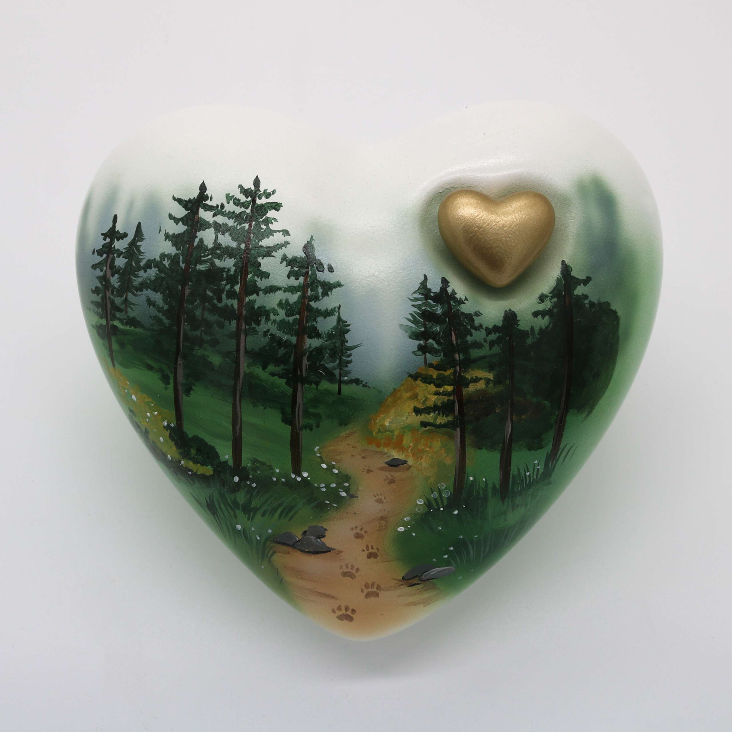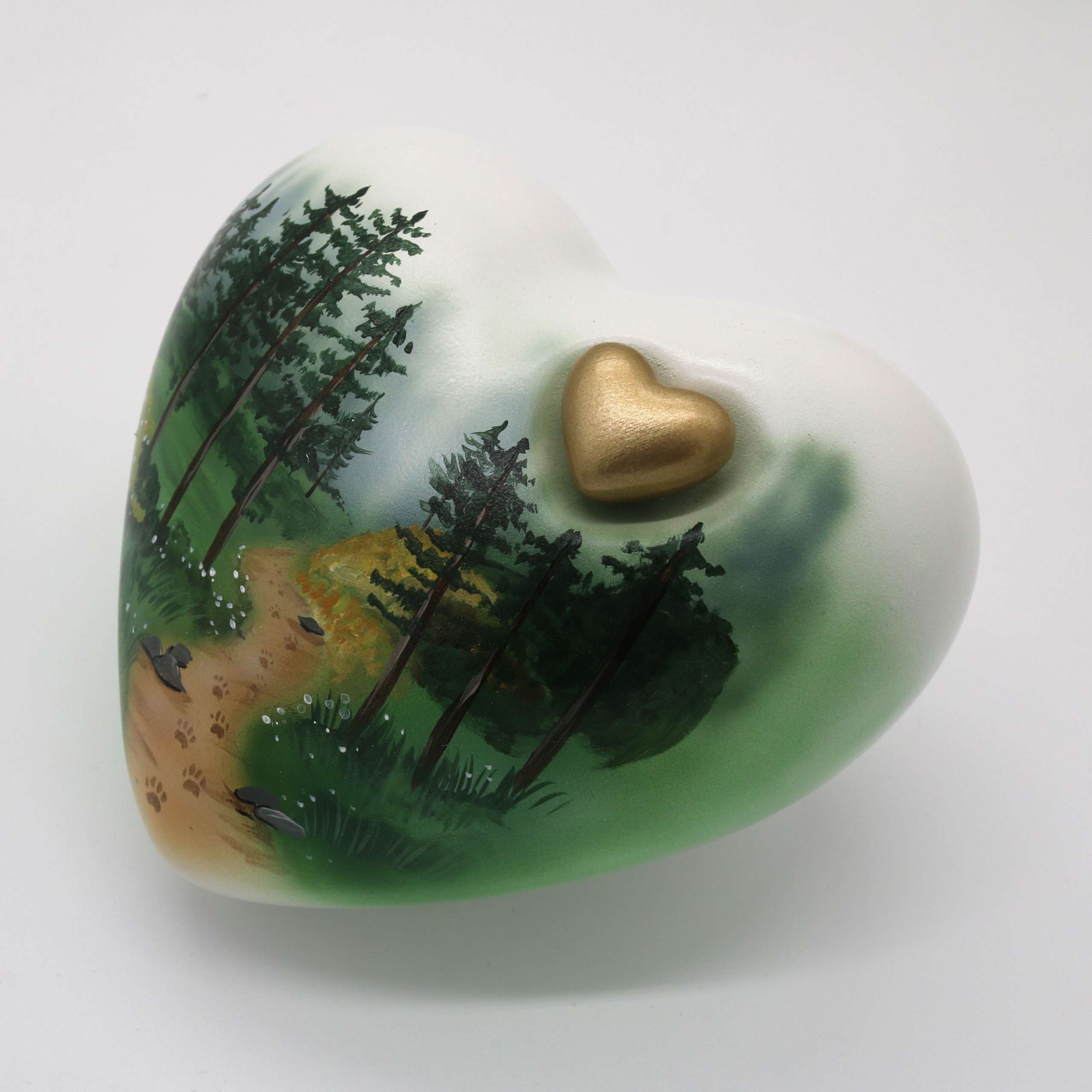 Kleine Pfötchen in einem wunderschönen Wald, eine traumhafte Landschaft macht diese Tierurne zu etwas ganz besonderen, liebevoll von Hand bemalt..